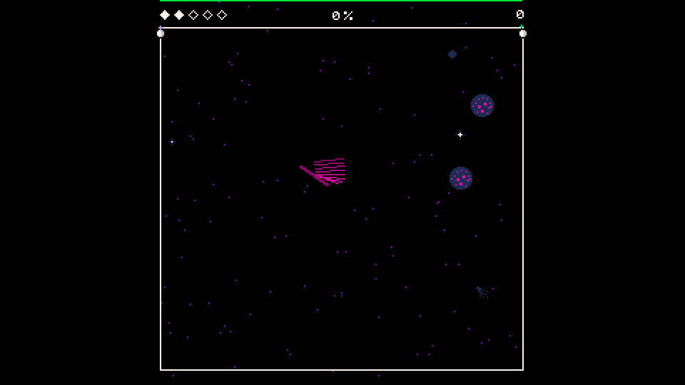 Move your ship around the grid, using the X button to leave the existing trail and fill in areas to trap the stix.